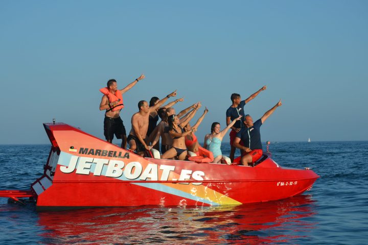 Our top rated jet boat is equipped with padded seats to ensure you are as comfortable as possible during your trip. Get on board and enjoy its strong 300CV jet-power turbo engine coupled with Hamilton Jet units, with an ability to pump an astonishing 50,000 liters of water per minute, while enjoying the views at speeds of up to 40 knots on water! And all this with the maximum safety and comfort thanks to our experienced and hand-selected crew who holds all mandatory commercial marine licenses, issued by Marina Mercante Española